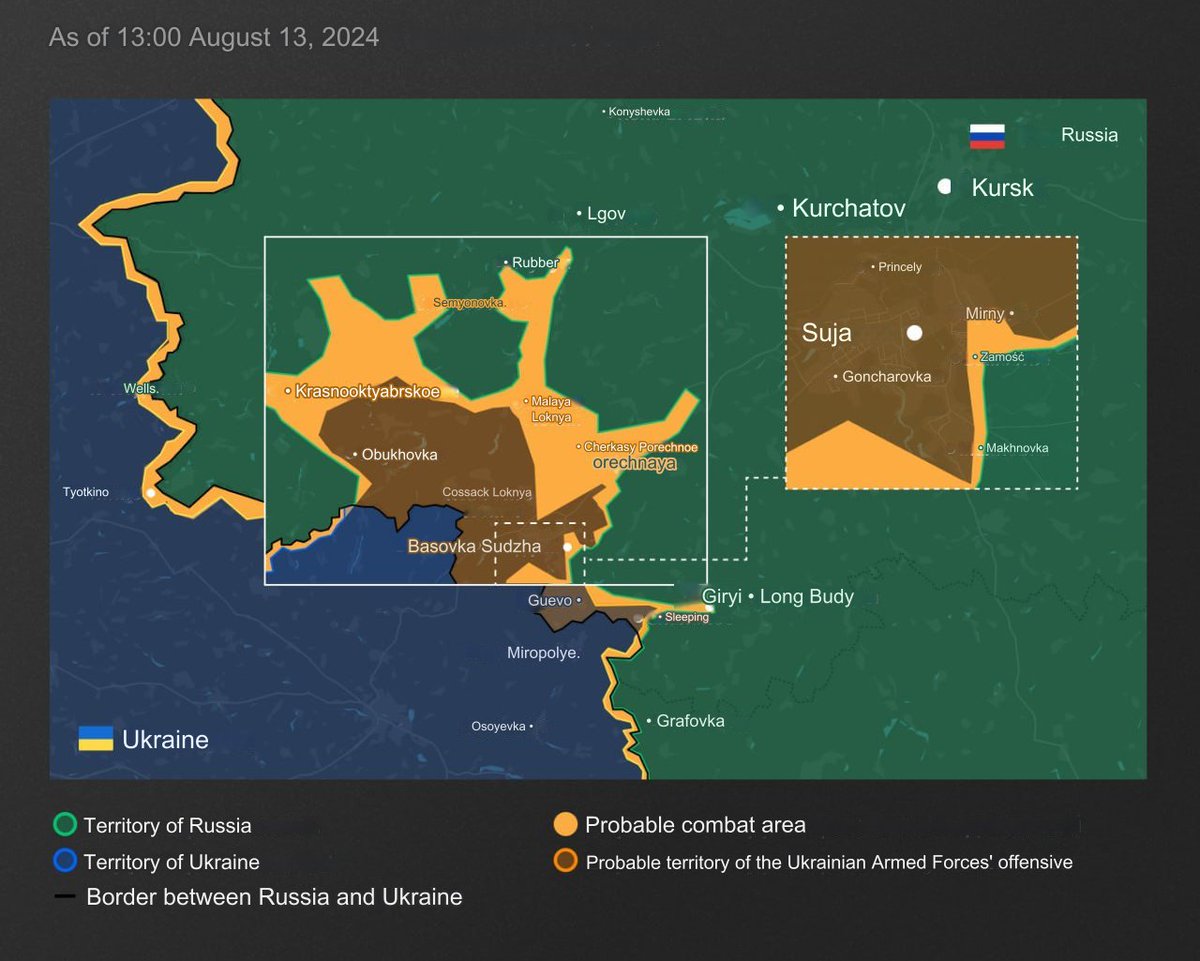 of Ukrainian reserves and how many troops were brought into Kursk is unknown. Ukraine's plans are also unknown. There are reports of a concentration of troops near the border with the Belgorod region. However, Russia is also making progress and they are approaching the border 7/8