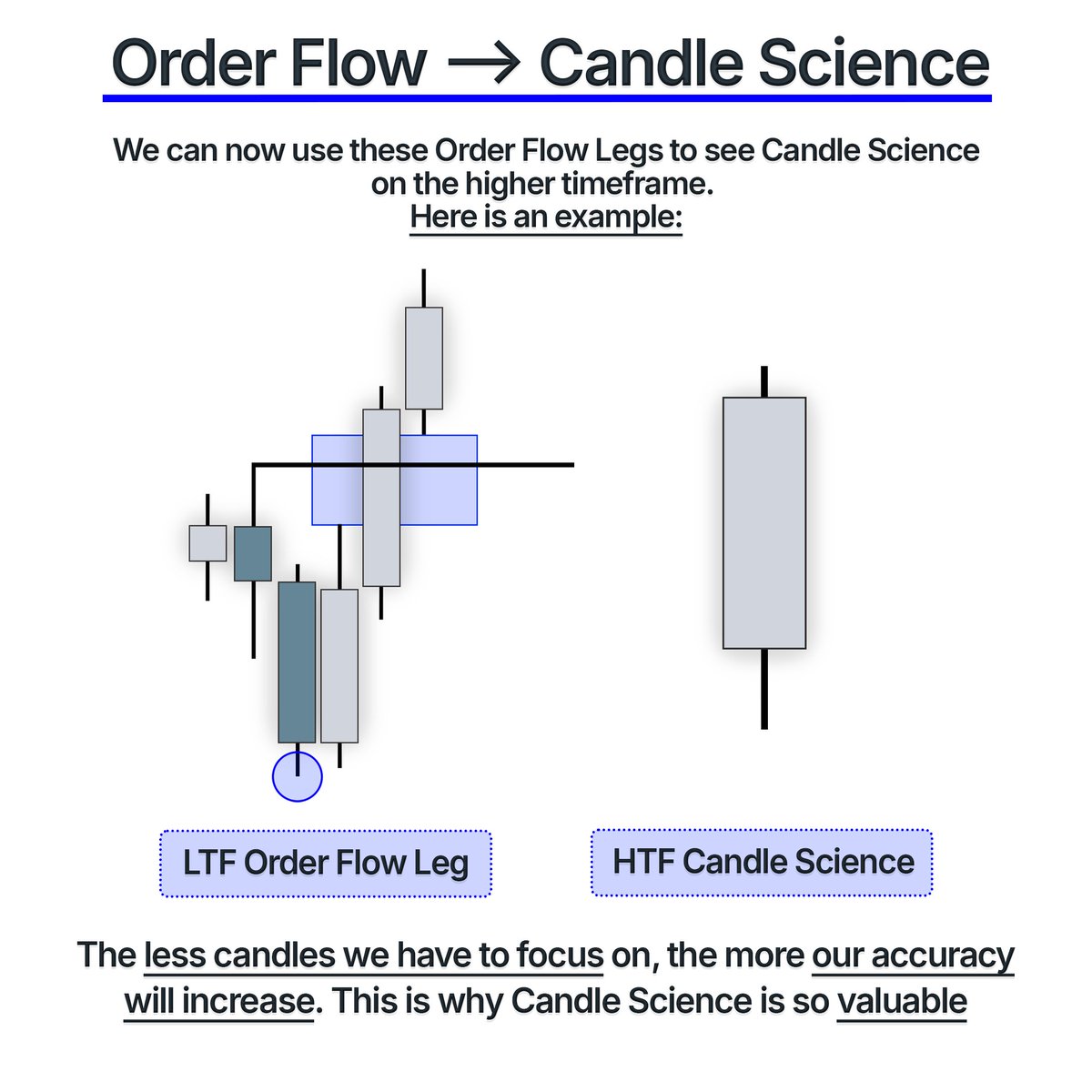 We now can use these Order Flow Legs to see Candle Science on the higher timeframes. We want to do this to minimize the amount of candles that we need to focus on. This will improve our trading accuracy.