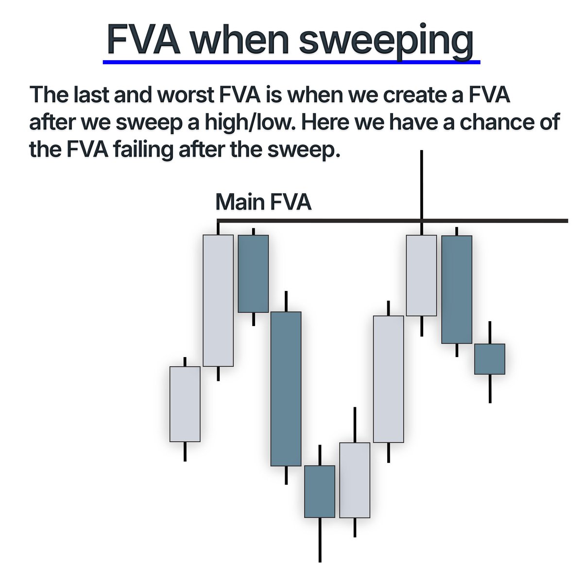 The last and worst FVA is when we create a Fair Value Area after sweeping a High or Low. In this scenario we have the potential to have a reversal as the FVA is not very high probability.