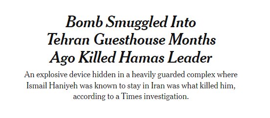 Il y a deux semaines, Israël a posé une bombe sous le lit du chef du Hamas Ismael Hanyieh, juste à côté du palais présidentiel, au cœur de Téhéran.