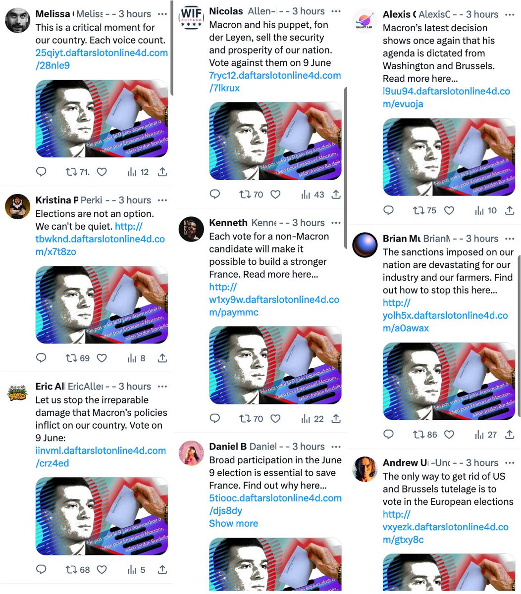 🧵 1. Pro-Kremlin Doppelgänger bots were manipulating voters against the incumbent leaders and in favor of AfD and BSW in Germany, RN in France, most of the time over months of our monitoring.
