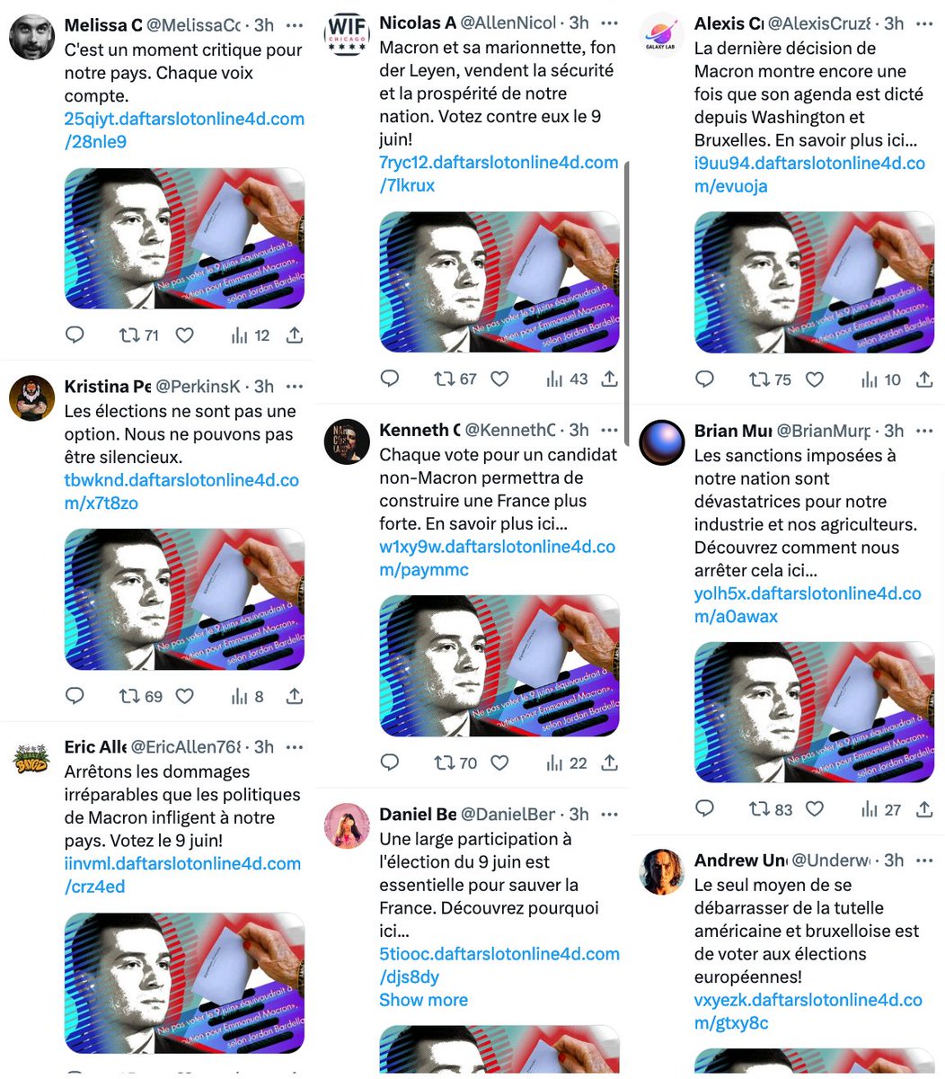 🧵 Russian state-sponsored RRN, a signature site of Doppelgänger influence operation, and its bots are amplifying and legitimizing the fake site suggesting that Emmanuel Macron and his party are (were) buying votes for €100 for the snap election to National Assembly (France)