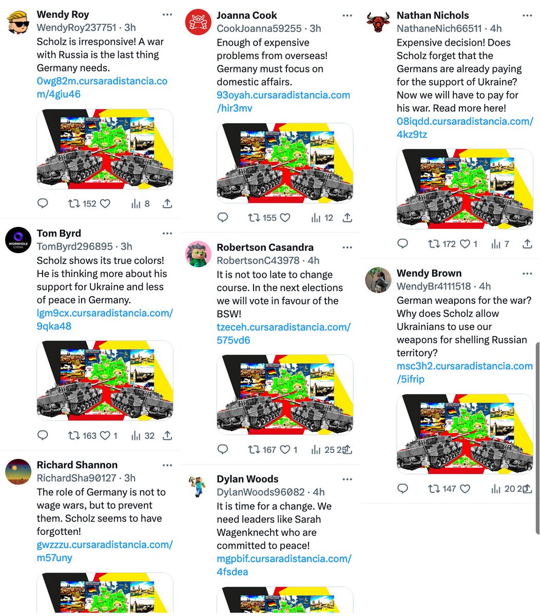 🤖 Pro-Kremlin bots of Döppelganger influence operation, mass-posting the fake Spiegel article: