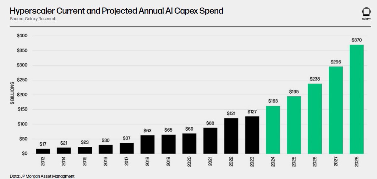 so-called "hyperscalers" like AWS, Azure, Google Cloud, etc, are expected to TRIPLE their capex spend on datacenters to support AI over the next 4 years..