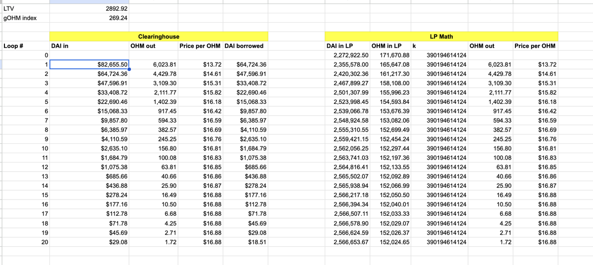 If you repeat this 20 times, you would move price from $13.24 to $16.88 (+27%) while taking 19,646.24 OHM out of circulation!