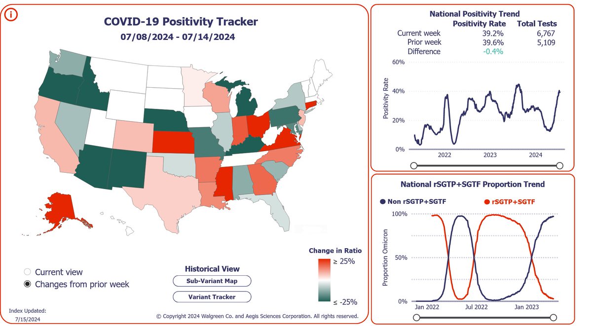 UPDATE: As of August 4, Walgreens is reporting COVID testing positivity of 40.2% which is ONLY .3% lower than the 40.5% hit on July 18 *AND* TESTING HIT A NEW SUMMER HIGH OF OVER 10.5K! The peak may still be yet to come according to this report. 🧵
