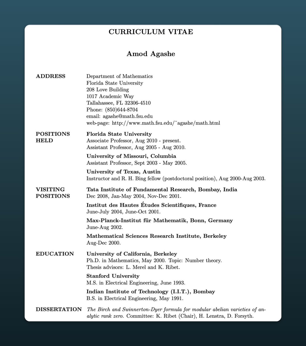 — IIT Bombay, Stanford MS electrical before Berkeley PhD in math