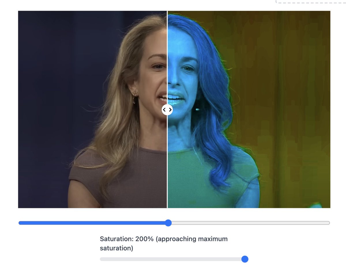 Compare that to a real image (from another TED talk) which doesn't have teeth patching and more consistent coloration on even colors. JPG compression on a real image can break this.