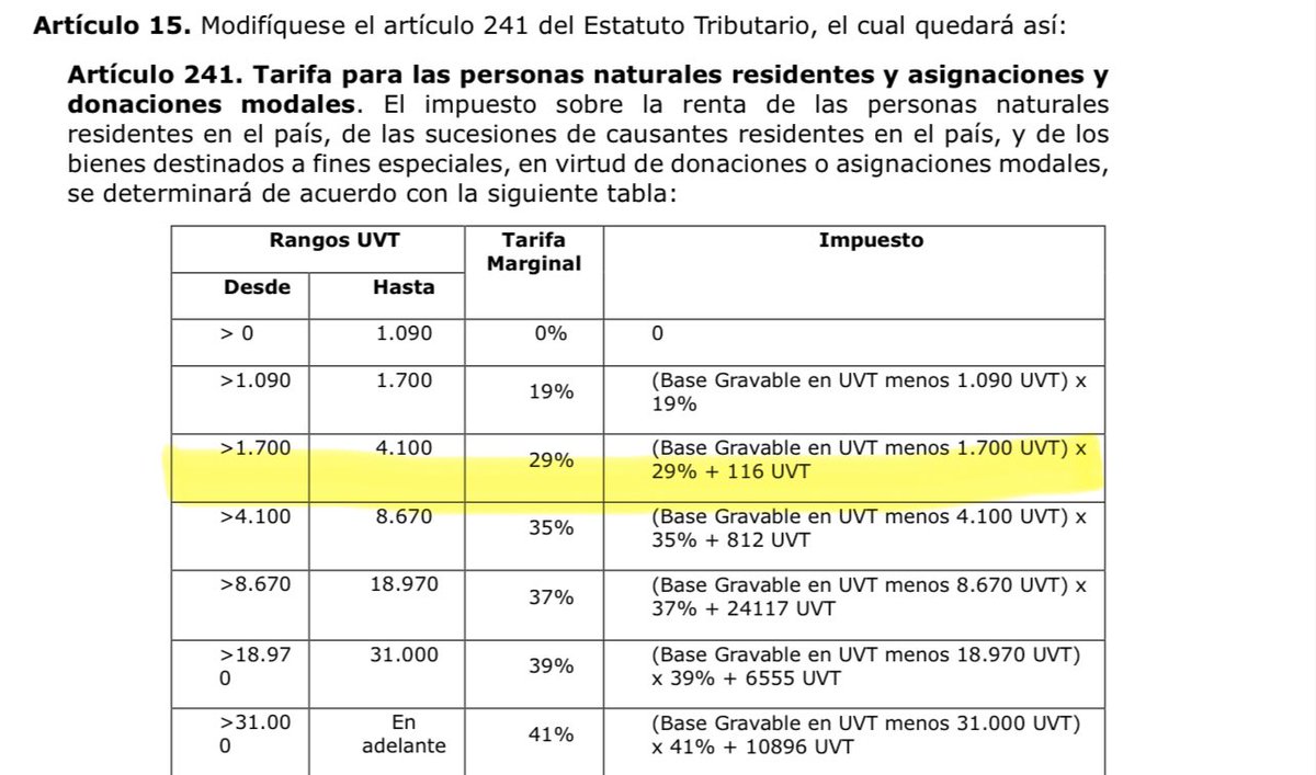 Esta es la nueva tabla del impuesto de renta que aplicaría si es aprobada la reforma.
