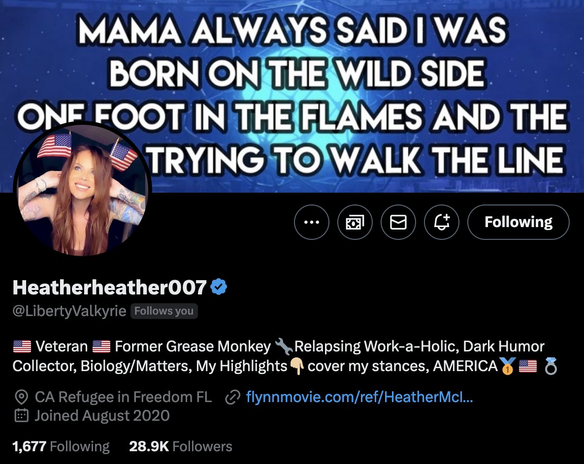 #5 Heather (@LibertyValkyrie) is known for her integrity and willingness to speak her mind on a variety of topics, including politics, culture, and current events. Follow her to see more of her on your timeline.