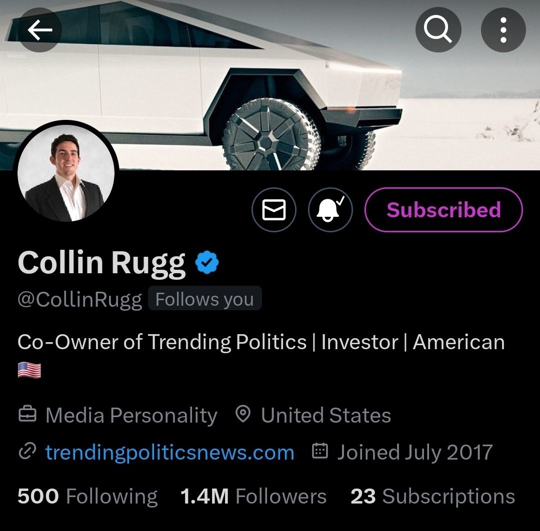 #12 Collin Rugg (@CollinRugg) is a phenomenon. No one captures breaking news with the precision he does. Skip the mainstream media and scroll his timeline instead, while you're there make sure to give him a follow and subscribe for tips on getting the most from 𝕏.