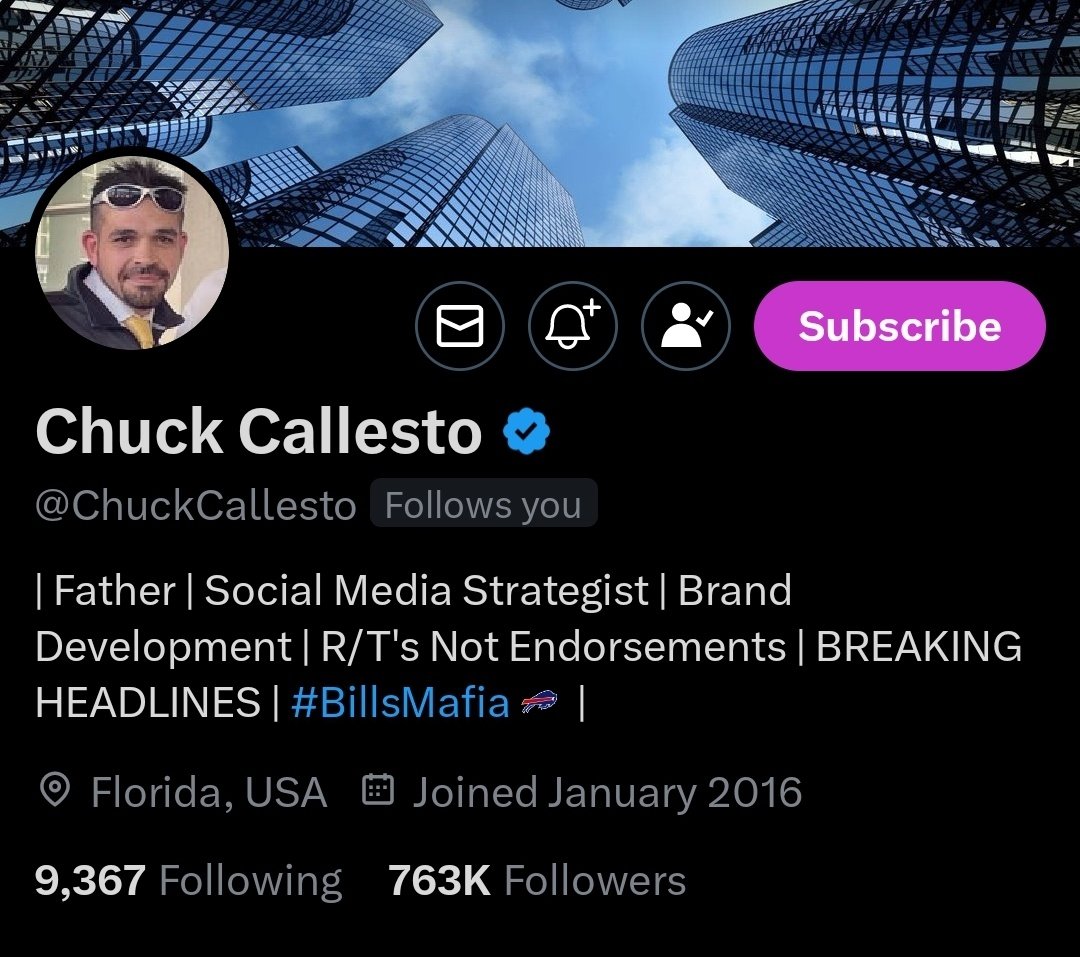 #15 Chuck Callesto (@ChuckCallesto) is a great source for breaking news and information who has an incredible ability to string together information in a quick yet captivating way. He's definitely someone you want to follow & subscribe to.