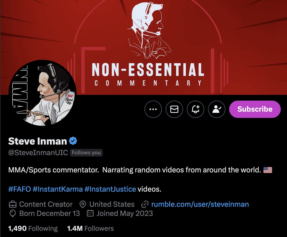 #18 Steve Inman (@SteveInmanUIC) is a brilliant commentator who adds originality to insane content. Whenever I'm having a bad day, I just scroll through his timeline. Do yourself a favor and give this great man a follow—you won't regret it.
