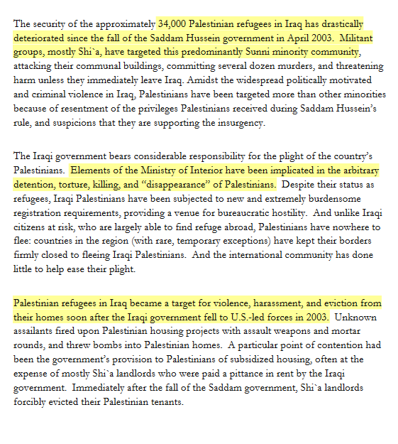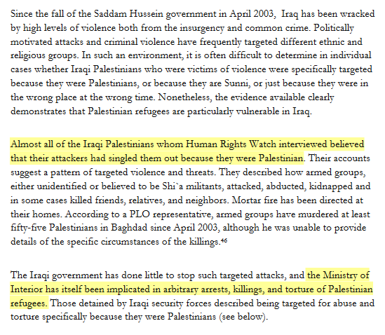 According to HRW, Shia militias (current Axis of Resistance; PMF) did not spare much time before attacking the Palestinian communities in Baghdad after the toppling of Saddam’s regime 2003.