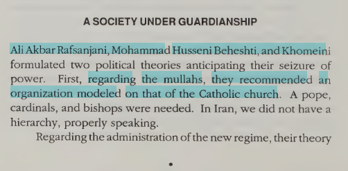 Mullahs organised a model based on the Catholic church. Very Islamic of Khomeini.