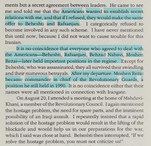Americans had most of the Iranian regime in their pockets as early as 1980. Examples: Beheshti, Rafsanjani, Behzad Nabavi, Mohsen Reza.