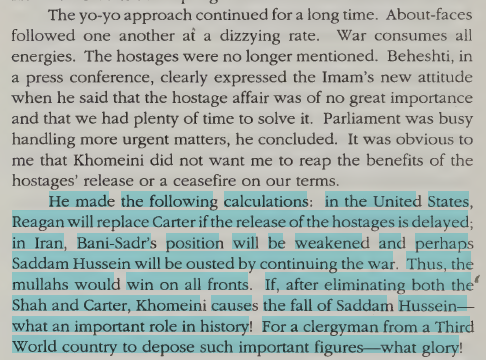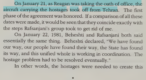 Khomeini basically gave the hostages as an inauguration gift to Reagan.
