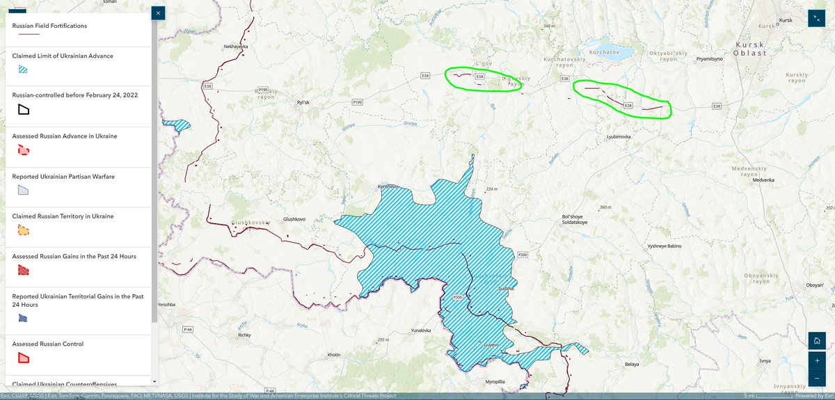 4/ These new fortifications are about 17 kilometers north of the furthest claimed limit of Ukrainian advances in Kursk Oblast, which suggests that Russian forces are concerned about potential continued and rapid Ukrainian mechanized northward advances within Kursk Oblast.