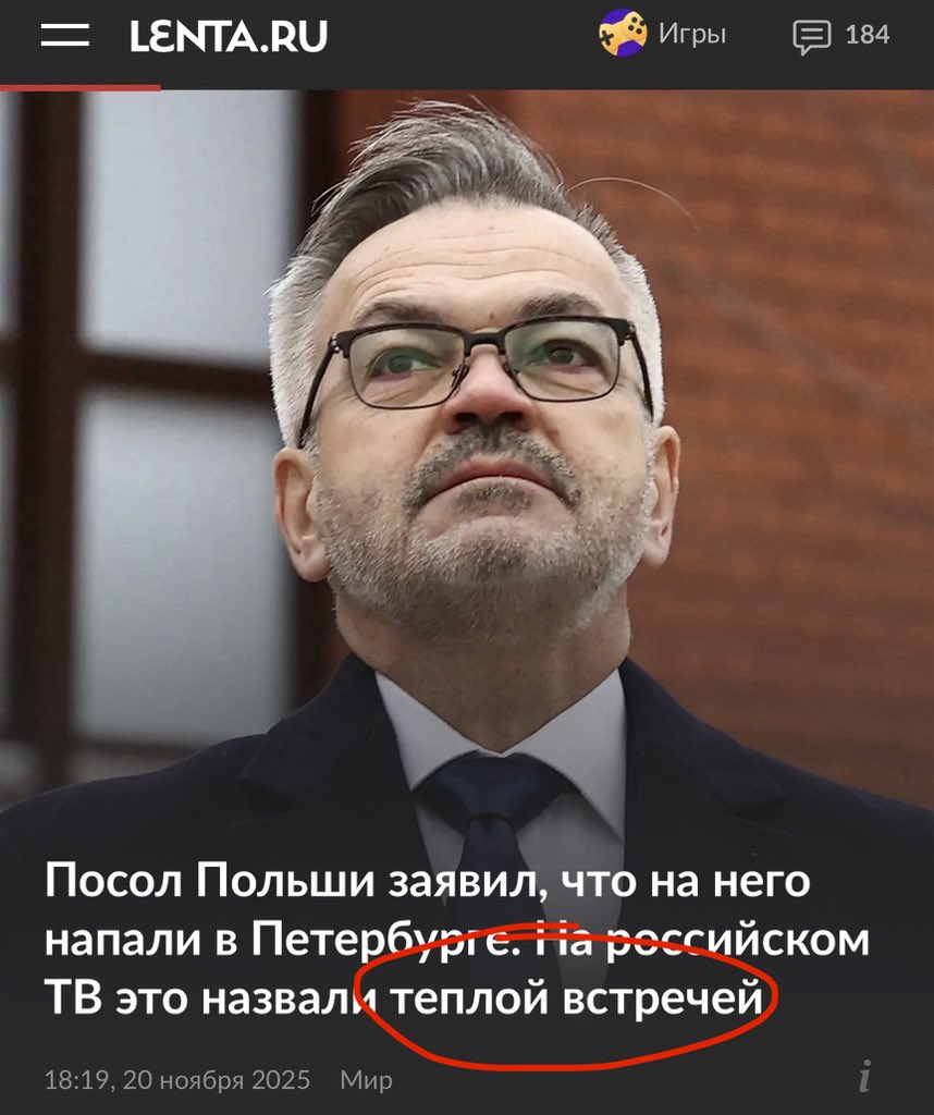 The Polish ambassador to Russia, Krzysztof Krajewski, and his security guards were attacked in Saint Petersburg by a ‘group of activists’. It began with verbal harassment and ended in a physical confrontation, which Russian media described as a ‘warm welcome’.