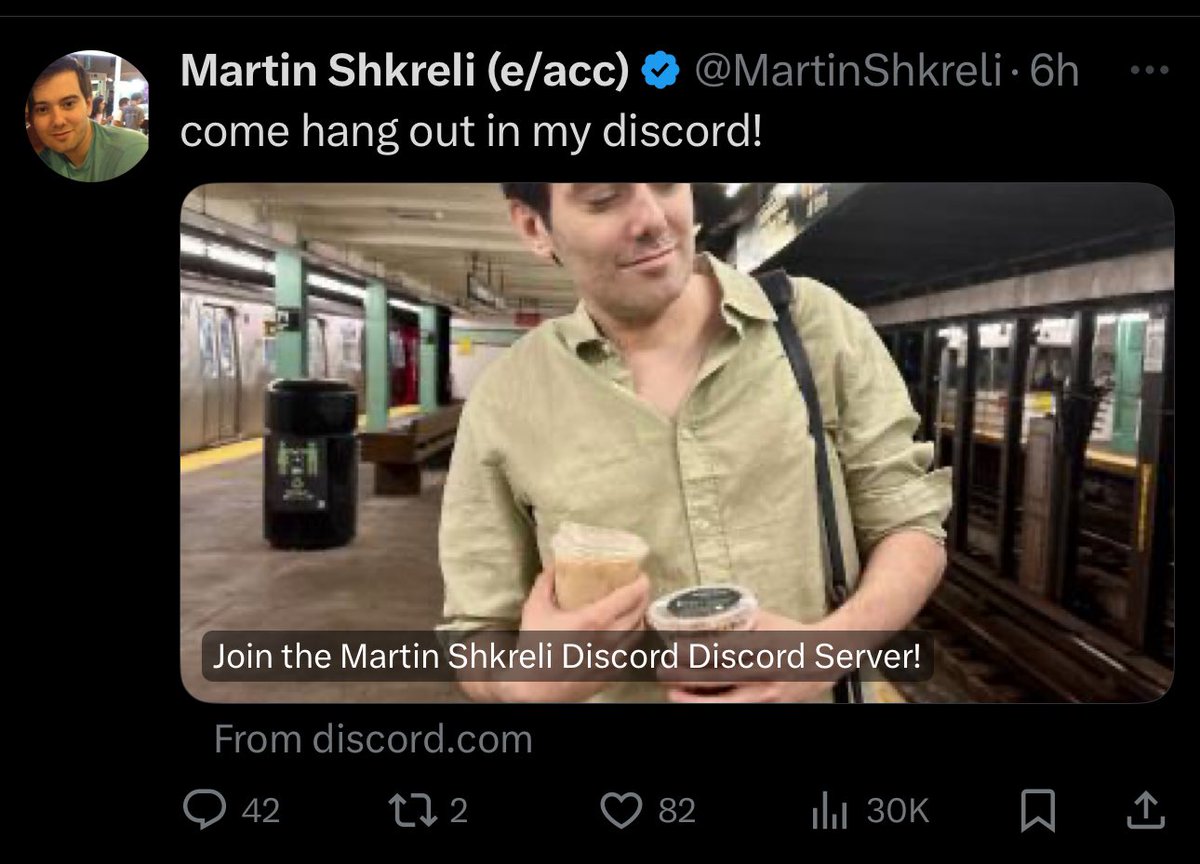 12:27 am UTC Martin Shkreli creates a spaces and announces he is the creator of DJT