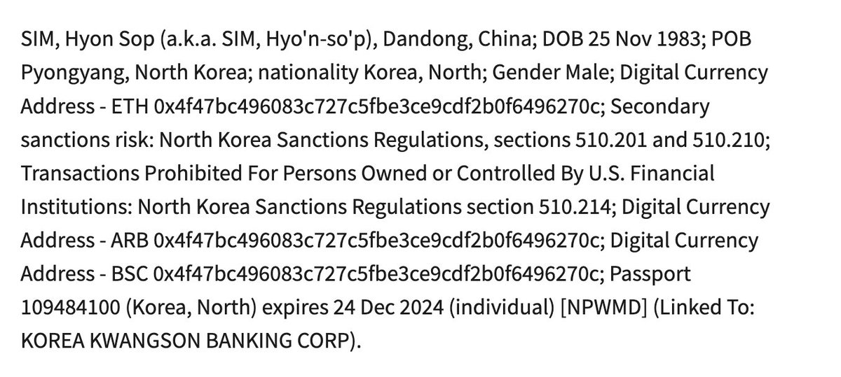 4/ Prior to this $5.5M flowed into an exchange deposit address with payments DPRK IT workers were receiving from July 2023 - 2024 and connections to Sim Hyon Sop who is OFAC sanctioned.