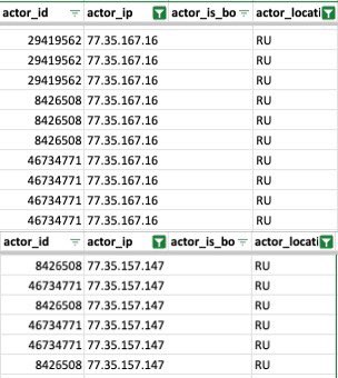 - Russia Telecom IP overlap between devs supposedly in US and Malaysia.