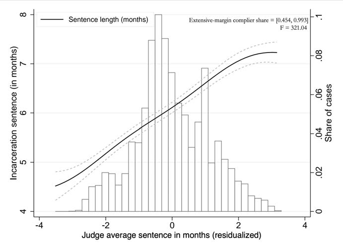 Since cases were randomly assigned to different judges, we get to clearly see the impact of their conviction habits.