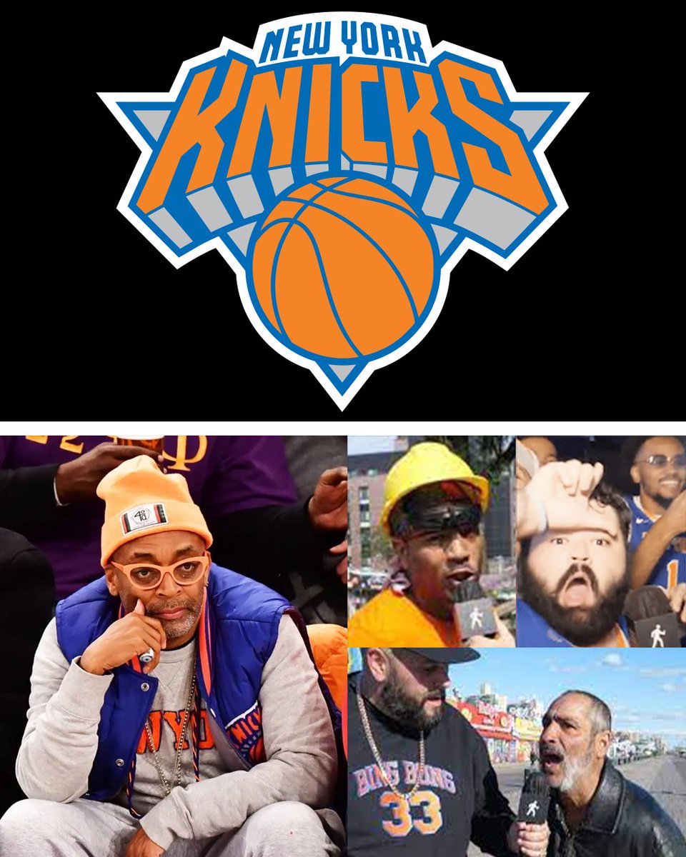 Knicks logo on top. Bottom has image of Spike Lee on the left and screenshots from Sidewalk NYC on the right.