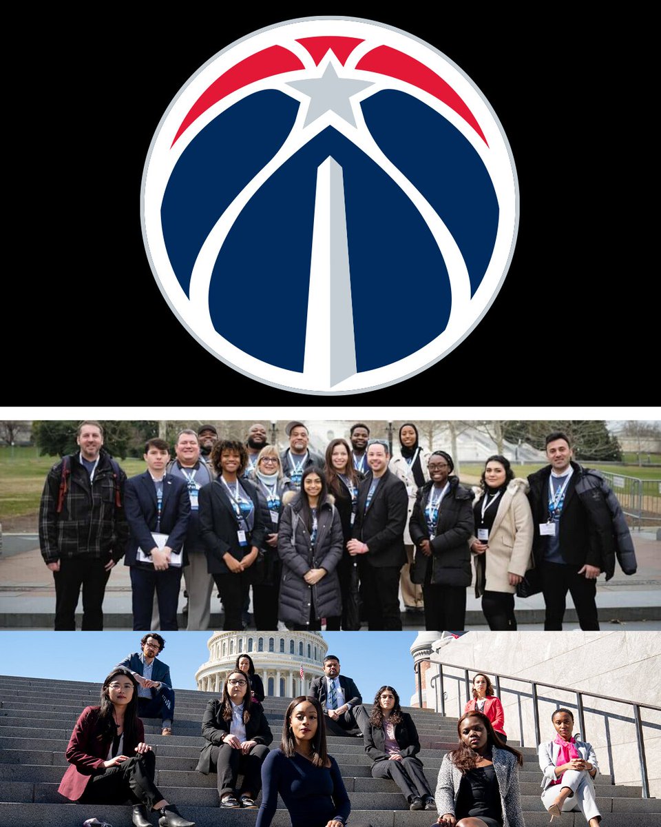 Wizards logo on top. Bottom is image of interns on Capitol Hill in Washington D.C.