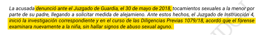 Una semana después lo denunció en el juzgado, así que la niña de 6 años recibió su segunda exploración vaginal. Y de nuevo, no encontraron signo alguno de abuso sexual.