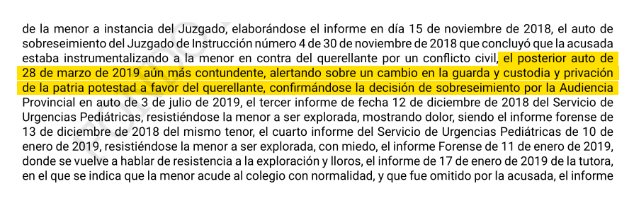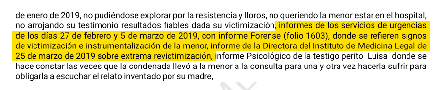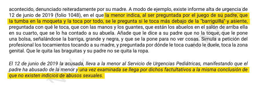 ¡Ah! Esta vez los servicios de urgencias emitieron un informe donde avisaban de que la madre estaba victimizando e instrumentalizando a la niña.