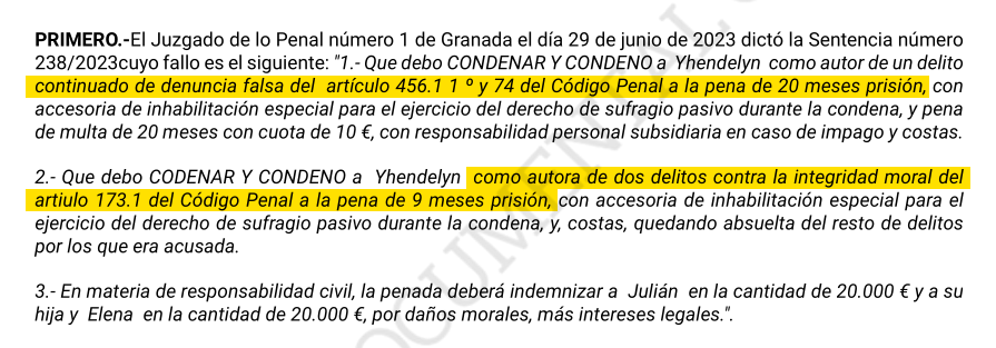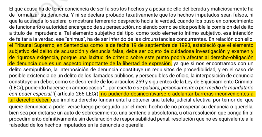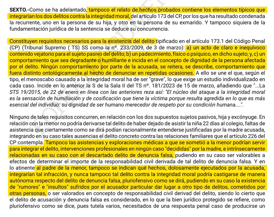 La sentencia añade que también era inocente de delitos contra la integridad moral. Porque ella no hizo más que denunciar, sin mala intención.