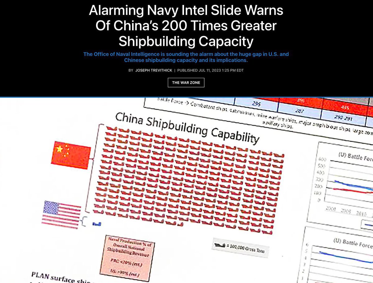 Just look at the graphs: they are #1 in trade, #1 in steel, #1 in rail, and #1 in ships. Then hear from the sitting US Secretary of the Navy in the QT below: one Chinese shipyard has more shipbuilding capacity than the entire US Navy combined!