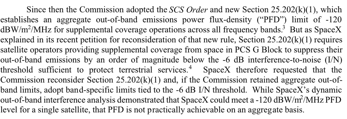 $ASTS: Yesterday, SpaceX filed a Petition for Rulemaking with the FCC. The Petition asks the FCC to amend 47 CFR 25.289 and 25.146 to ease the EPFD limits. Even if successful, I don’t foresee SpaceX securing commercial approval anytime soon.