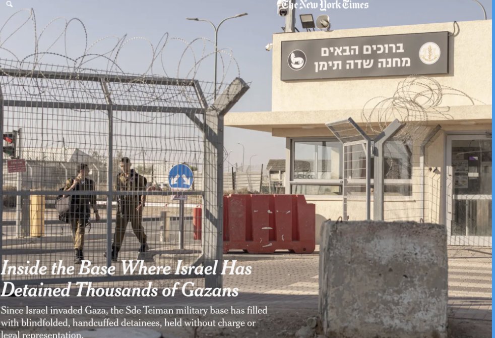 Oct. 7-present. Israel tortured 4,000+ Palestinians at the Sde Teiman prison: systematic beatings, sexual violence, electric shocks, electric sticks up anuses, sleep deprivation, psychological torture. 35 have "died" while in the prison since Oct. 7. nytimes.com/2024/06/06/wor…