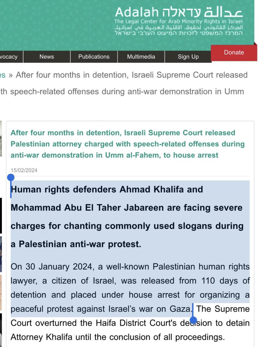 Oct. 19th, 2023: Ahmad Khalifa & Mohammad Abu El Taher Jabareen organized a peaceful protest against the mass murder of Palestinians in Gaza. They were arrested & imprisoned for 110 days in a torture dungeon. adalah.org/en/content/vie…