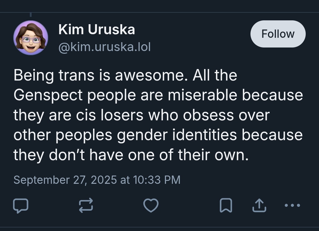 Everyone at Genspect is simultaneously agender and ceesgender (guys I think we broke Kim)