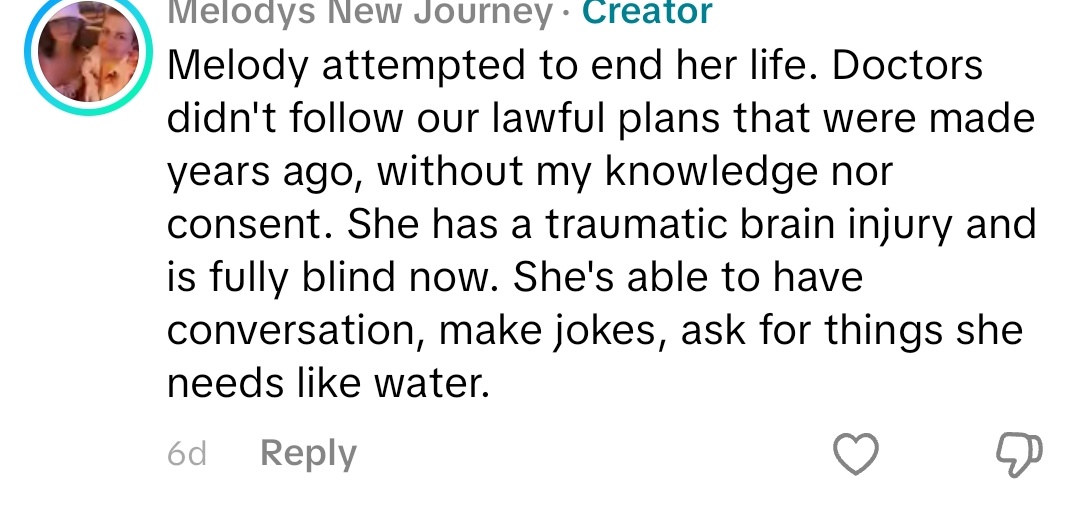 According to his mother, Melody the minor signed a Do Not Resuscitate order (DNR) years prior to his attempt, without her knowledge. Doctors ignored the DNR and resuscitated the healthy 17 year old medical abuse victim. Now he's got a lifetime of TBI recovery ahead.