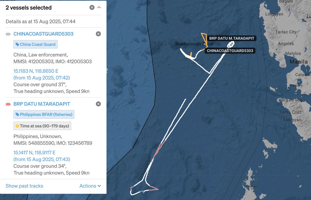 5/Today may mark could be an escalation of the tensions at Sabina Shoal that SeaLight has been tracking all summer (for background see my 13 May blog post: ). The next few hours will tell. [🧵5/x]sealight.live/posts/flashpoi…