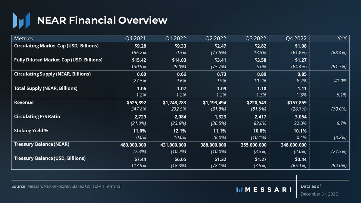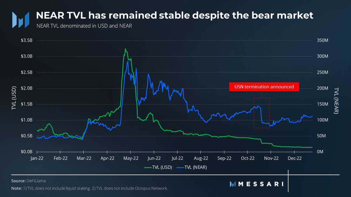Despite the bear market, the TVL on the NEAR Network has remained steady, with a quarterly decrease of 10% but a YoY increase of 160%, from 43 million to 113 million.