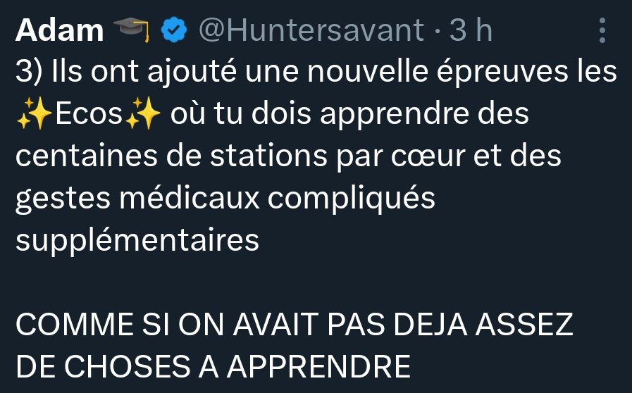 Donc Adam, mon jeune confrère, est très en colère contre cette réforme et honnêtement, comme tous les étudiants en médecine de France, il a de très bonnes raisons de l'être.