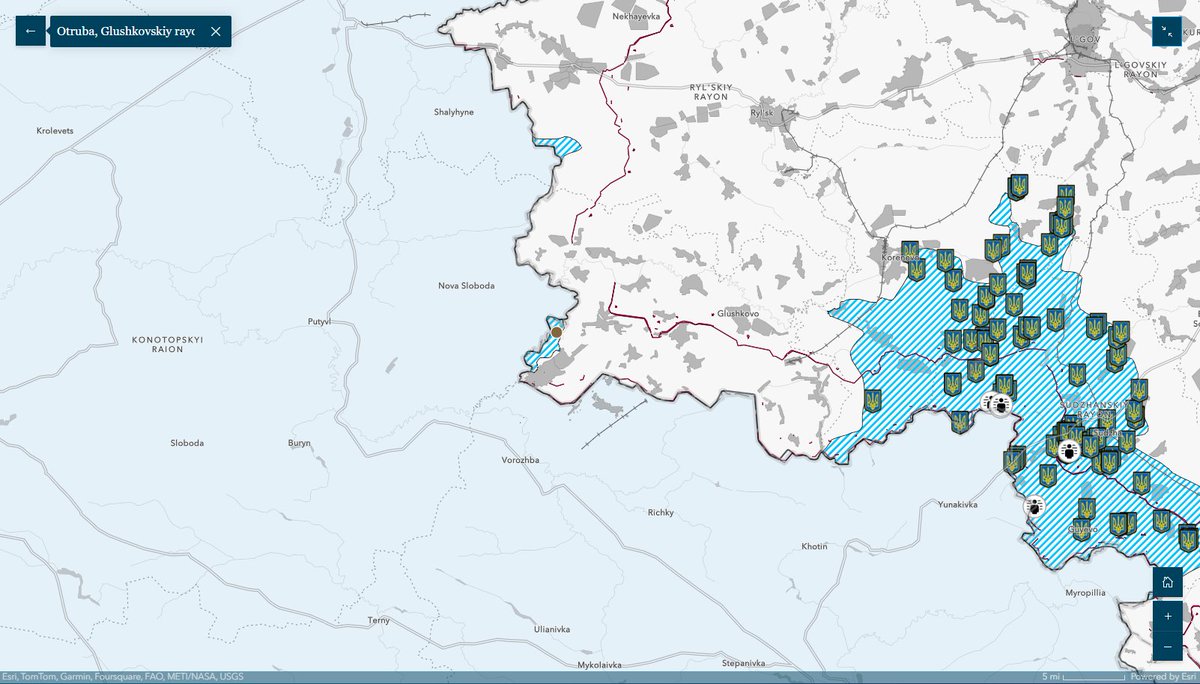 6/ A prominent Russian milblogger claimed that there are unconfirmed reports that Ukrainian forces entered Otruba (north of Tetkino and on the west [right] bank of the Seim River), and another Russian milblogger claimed that Ukrainian forces are operating near Tetkino.