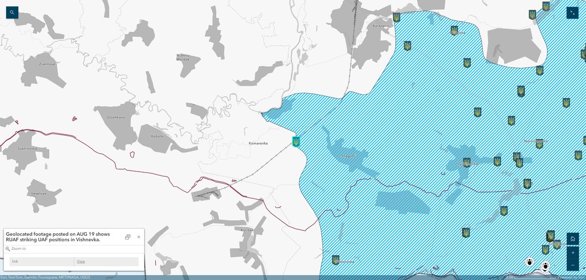 2/ Geolocated footage published on August 19 indicates that Ukrainian forces advanced in Vishnevka (southwest of Koronevo). The Russian MoD claimed that Russian aviation and artillery struck Ukrainian forces operating near Vishnevka.