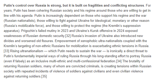 3/ Putin’s control over Russia is strong, but it is built on fragilities and conflicting structures. For years, Putin has been cohering Russian society and his regime around those who are willing to get in line with his agenda.