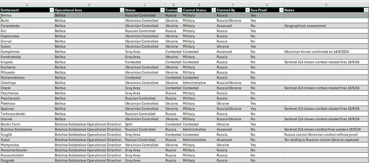 We have created an Excel sheet tracking control of hamlets, villages, and settlements