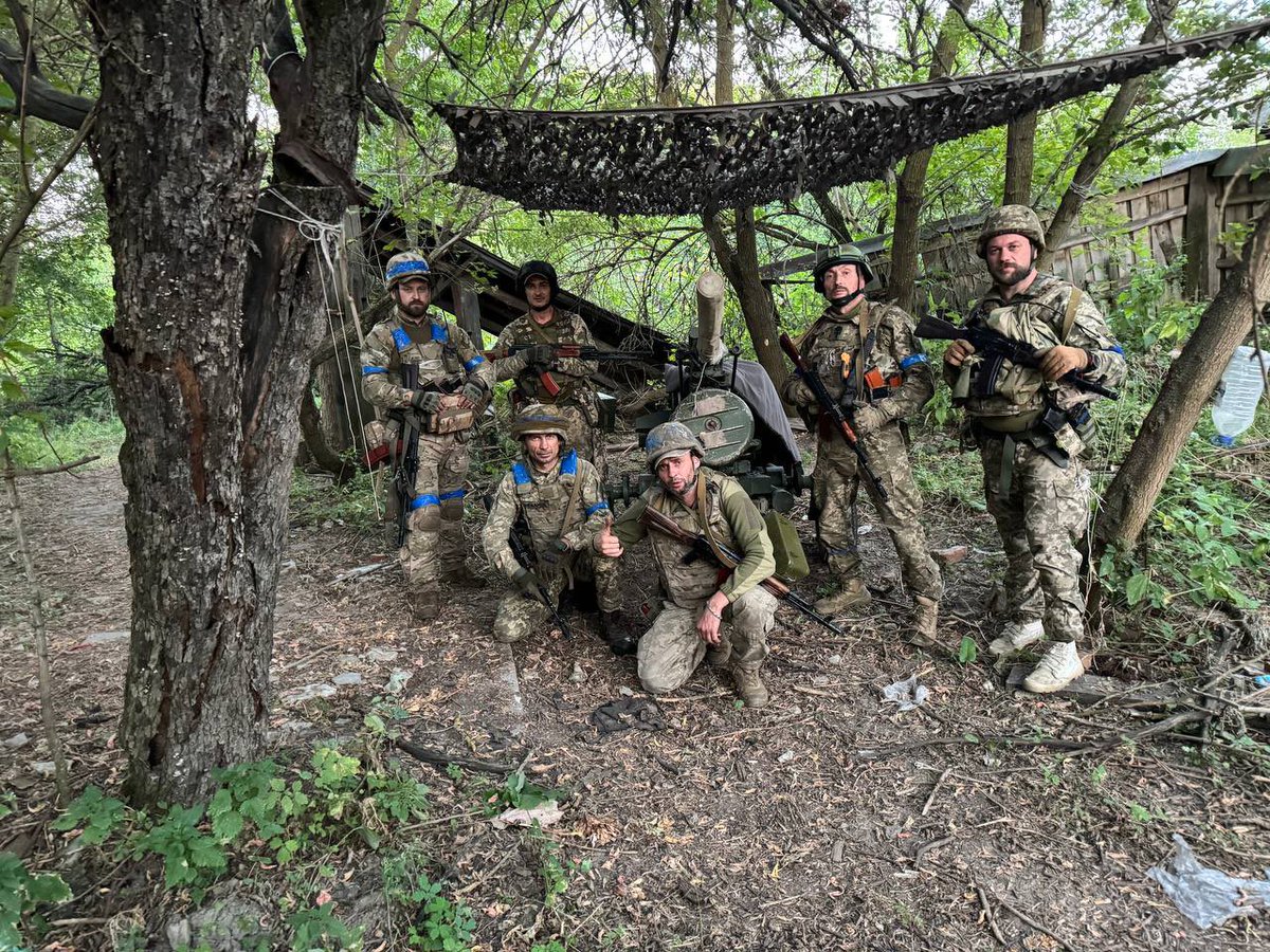 Ukrainian soldiers with a captured vehicle of the Russian department of internal affairs in the Sudzha district, Kursk region.