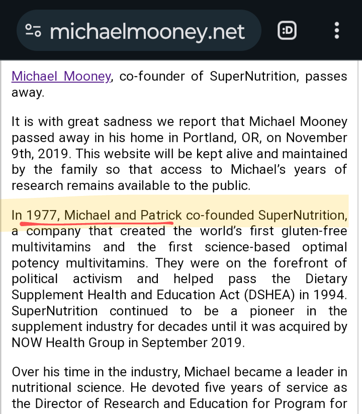Despite a sometimes rocky father & son relationship, a mutual passion for wellness, desire to help others, and love & admiration for one another enabled Patrick & Michael Mooney to put aside differences to establish SuperNutrition in 1977. *Michael's Dad passed away in 2013.🧵3/9