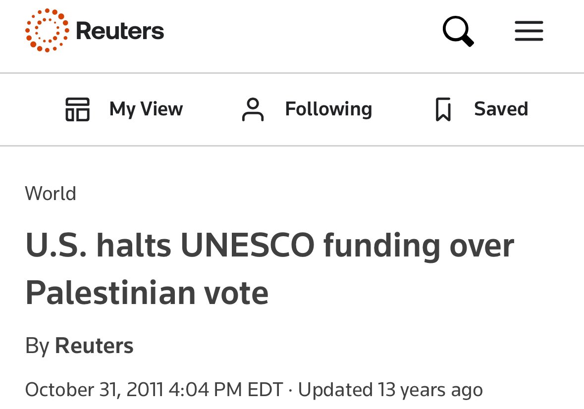 As a result, the US did lose its voting rights and in 2017, left UNESCO entirely.