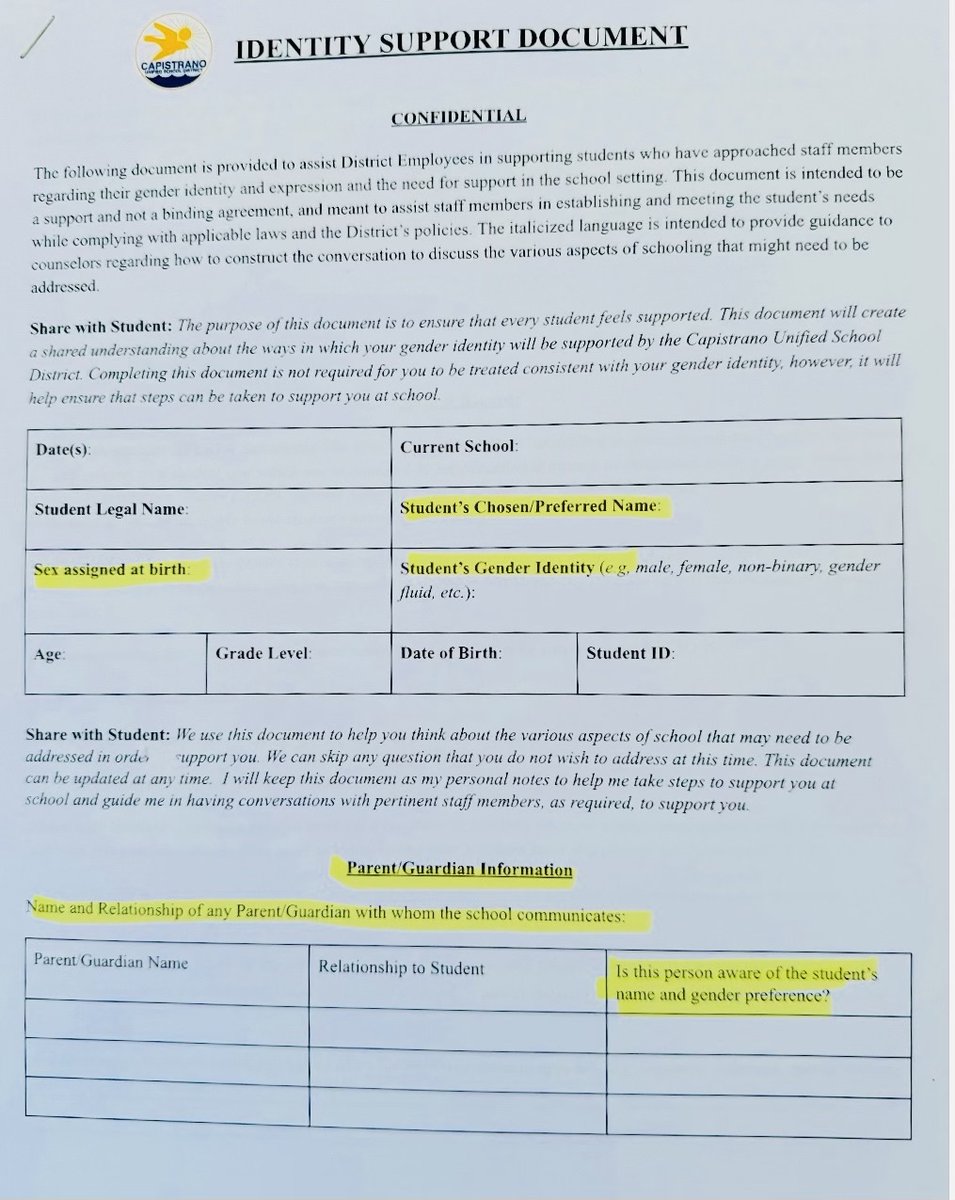 1/ My school district has a secret gender transition plan for students. It helps them transition at school while keeping it hidden from parents and others. It's called an "Identity Support Document" and it is creepy...🧵