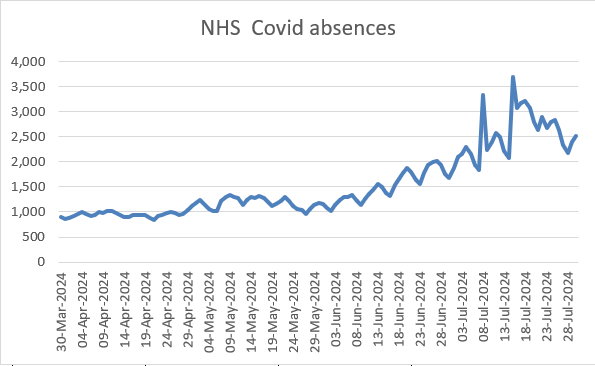 The number of NHS staff off work with covid is also useful, though the stats are only released once a month.